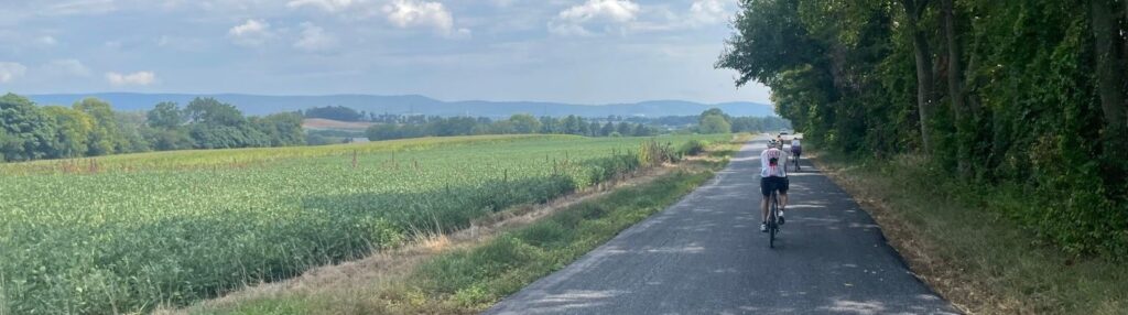The terrain we ride ranges from the flatlands of the Eastern Shore to the rolling hills and valleys of the Piedmont and the sometimes steep flanks of the Appalachian mountain ridges to our west. Our routes, many of which we’ve ridden for years, take quiet back roads through gorgeous and varied scenery, with regular stops for supplies and rest.